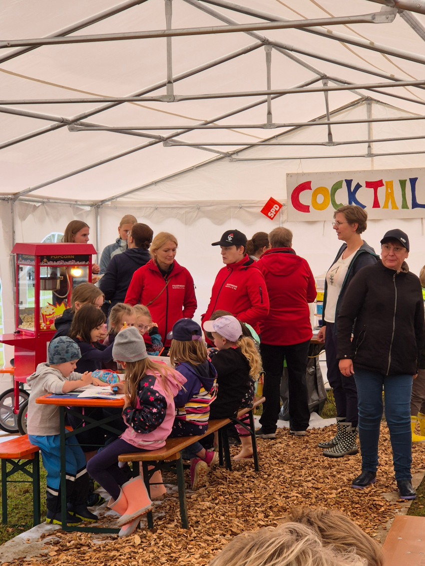 Gut frequentiert war auch die von der Bergwacht begleitete Kisten-Kletter-Vorrichtung für groß und klein, die als wirksamer Publikumsmagnet galt. Das Interesse für die Feuerwehr sollte beim Nachwuchs die Berührung mit einem Löschgruppenfahrzeug der Stützpunktfeuerwehr Neukirchen b. Hl. Blut wecken. Gut schmeckten wiederum alkoholfreie Kindercocktails, die vom Nachwuchs der OV-Mitglieder ausgeschenkt wurden. Das süße Verlangen der Kinder stillte außerdem Popcorn.